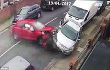 Sebuah kecelakaan mobil cukup aneh terjadi di Cleethorpes, Lincolnshire, Inggris. Seorang pemuda mengendarai Peugeot 207.