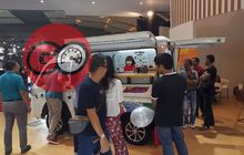 Para pengunjung mengerubungi pikap mungil Hi-Max yang sudah dimodifikasi jadi kafe berjalan di booth Daihatsu.