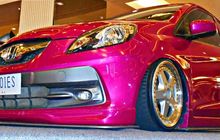 Modifikasi Honda Brio milik Anggi asal Cilegon yang mengadopsi gaya feminim pakai kelir pink, pelek VIp dan interior pink