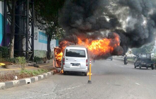 Kebakaran mobil terjadi lagi di jalanan, tepatnya di Jalan Gatot Subroto, Senayan , Jakarta Pusat. Mobil Daihatsu Gran Max menjadi korbannya