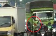 Nekat! Video Aksi Sekelompok Orang Hadang Truk Trailer di Jalan Raya, Nyawa Jadi Taruhannya