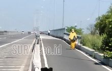 Perempuan Berhijab Jalan Kaki Menuju Polisi yang Sedang Razia di Jembatan Suramadu Madura