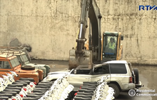 Presiden Filipina, Rodrigo Duterte kembali menyaksikan penghancuran kendaraan mewah hasil selundupan.