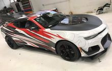 Nah yang mau kami bahas ialah Chevrolet Camaro ZL1 dengan bodi nyentrik terbungkus cutting sticker grafis.