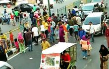 Memang enggak ada salahnya bagi-bagi rezeki, tapi jangan sampai bikin jalanan macet dan berisiko membahayakan pengguna jalan seperti ini.