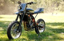 Motor KTM yang satu ini ingin tampil beda, maka pelek supermoto pun pada akhirnya dikawinkan dengan bodi bergaya flat tracker. cakep nih!