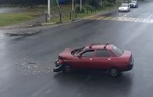 Kecelakaan tunggal tersebut bukan pindah jalur lalu menabrak benda lain. Melainkan berupa tabrakan yang sekejap meluluhlantakkan bagian mobil.