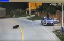 Pengemudi satu ini memang sungguh beruntung. Ia selamat dari 'serangan' dua ban mobil yang melintas di jalan