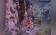 Video Mobil Ini Tertimpa Reruntuhan Batu Saat Melewati Tebing