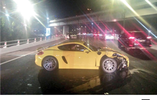 Sebuah mobil sport Porsche dengan nomor polisi B 185 MMM dan Nissan warna putih F 1424 KY alami kecelakaan di Layang Tol Tomang arah Pluit, Jakarta Utara, Sabtu (28/7/2018).