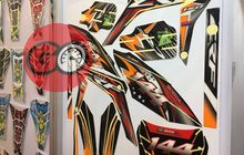 Salah satu cara menjaga bodi motor adalah dengan memasang decal atau stiker yang menutupi seluruh bodi.