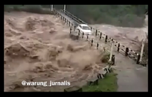 Bikin Deg-degan, Mobil Nekat Seberangi Jembatan Sungai yang Banjir Bandang