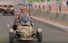 Enggak mau kalah dengan tren Presiden naik moge, Presiden Turkmenistan juga riding naik motor trike nih.