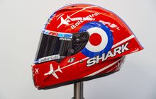 Berlaga di negaranya sendiri, pembalap Moto2 Sam Lowes menggunakan helm dengan livery khusus untuk MotoGP Inggris di sirkuit Silverstone.