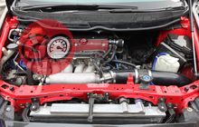 Ubahan gila yang dilakukan Reinhard pada mobilnya, Honda Civic FD1. Tidak saja tampil mencolok dengan bodi airbrush tapi juga ubahan mesin