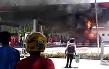 SPBU Tiba-tiba Terbakar, Seorang Sopir Angkot Luka Bakar Parah Karena Mobilnya Terlalap Api