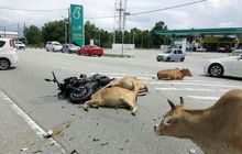 Entah sial atau sudah takdir, rombongan touring di Malaysia ini harus kocar-kacir saat gerombolan sapi tiba-tiba mengamuk dan lari ke jalan.