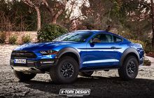 Gambar rendering Mustang crossover dibuat X-Tomi Design, yang membayangkan Mustang Raptor dengan kaki-kaki jenjang.