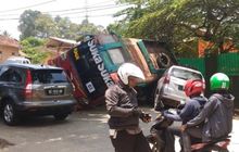Hendak Demo di Mapolda Lampung, Bus yang Ditumpangi Demonstran Terguling dan Timpa Avanza