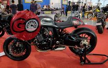 Suzuki GSX-R 400 garapan Lunatic Custom Motorcycle ternyata memakai kaki-kaki yang serem. Pelek Ducati Diavel hingga Swing arm Multistrada.