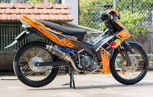 Modifikasi bergaya road race sebenarnya cukup menarik mata terbukti dari tampilan Jupiter MX yang bernuansa KTM Red Bull Racing ini.