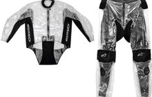 Penambahan bahan kulit sintetis ini agar jas hujan tetap lentur dan tidak mengganggu pergerakan pembalap.