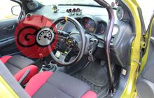 demi mengejar aura street racing, interior HOnda Mobilio ini pun sarat dengan piranti seperti turbo timer, shortshifter, jok semi bucket, dan rollbar