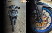 Modifikasi Yamaha MX King ini bisa dibilang sederhana tapi hasilnya luar biasa. Bajunya cuma ganti warna, peleknya lumayan juga.