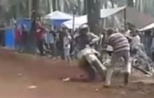 Terjadi kecelakaan pada balapan grasstrack di Langkat, Sumatera Utara. Seorang pria tertabrak pembalap