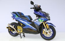 Konsep racing memang paling pas untuk Yamaha Aerox, apalagi dibungkus livery Yamaha Movistar. Part tambahannya pun racing abis.