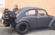 Kelakuan gokil dilakukan pria bernama Mike Neiman dari California ini yang menempelkan mesin radial 7 silinder dari tank di VW Beetle alias VW kodok.