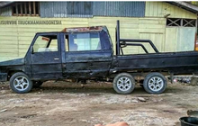 Modifikasi ekstrem yang menimpa sebuah Toyota Kijang Doyok yang pakai enam roda sekaligus, seperti ini tampilannya