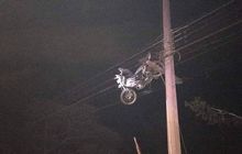 Ada Motor Nyangkut di Kabel Listrik Setinggi 10 Meter, Kok Bisa?