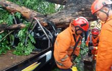 Waspada Hujan Pohon Tumbang Timpa Pick-Up, Bagian Depan Ringsek