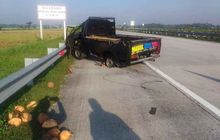 Kecelakaan terjadi di Tol Jombang-Mojokerto yang melibatkan mobil pick up bermuatan kelapa (23/4/2019).