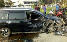 Sebuah Honda Mobilio rusak parah di bagian depan sehingga terlihat habis dicoak setelah mengalami kecelakaan beruntun di Sidoarho, Rabu (24/4/2019).