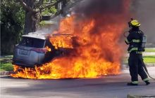 Meski ditangani oleh regu pemadam kebakaran, proses memadamkan api di mobil ini bukannya mudah. Simak nih videonya