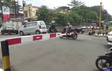 Viral Penumpang Motor Cium Palang Perlintasan Kereta Api Sampai Terjengkang, Helmnya Juga Terbang