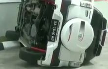 Nekat pindahkan mobil orang tuanya saat ditinggal isi bensin, seorang bocah bikin Toyota Rush terguling.
