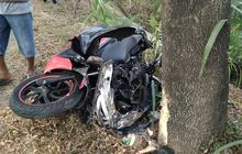 Gara-gara menghindari razia, rider Honda Revo bikin celaka rider Honda PCX. Rider Honda PCX nyemplung ke sungai dan motornya nabrak pohon