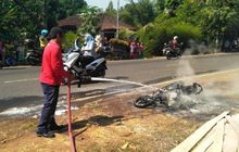 Honda Beat warna putih bernomor polisi B 3910 NGA terbakar di jalan raya Gejlig, Kajen, Kabupaten Pekalongan, Jawa Tengah, Jumat (28/06/2019).