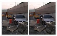 Adu Keras, Toyota Innova Sundul Separator Beton di Sukoharjo. Beton dan Mobil Sama Remuknya
