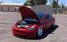 Modifikasi mobil listrik Tesla Model 3 yang dibuat ceper model bagged dan tabung suspensi dibuat unik, awas ketipu sob
