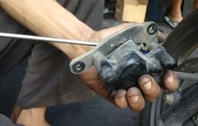 Hartono, Montir Barokah Motor, melakukan proses penggantian kampas cakram rem depan Honda BeAT yang tak lebih dari 15 menit.