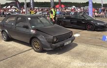 Modifikasi sebuah mobil tua VW Golf Mk2 keluaran tahun 1980 yang diubah jadi mobil balap drag, power tembus 730 dk
