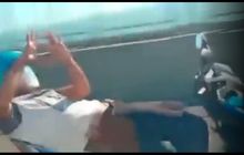 Entah kenapa pengendara Honda BeAT yang melintas di jalur mobil Jembatan Nasional Suramadu tersebut bergaya-gayaan tanpa mengontrol kendaraanya.