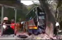 Bus Ini Dihantam Truk Tronton, Bagian Depan Ringsek Tabrak Pohon