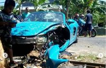 Porsche 718 Boxster S Ringsek Total di Magetan, Hindari Motor Belok Mendadak, Berakhir Tabrak Pohon