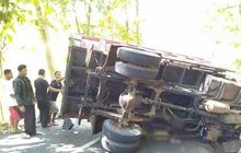 Penyebab kecelakaan diduga karena truk mengalami rem blong saat tengah melintasi turunan di Desa Cihonje, Kecamatan Gumelar, Banyumas.