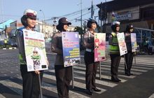 Polwan Ramai-ramai Bagi-bagi Cokelat dan Bunga di Jalan, Ada Apa Nih?